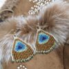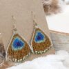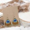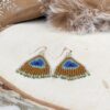 Boucles d’oreilles plumes de paon, bijoux délicats qui allient harmonieusement des couleurs pétillantes à un dégradé de bleu jusqu’au bleu profond.